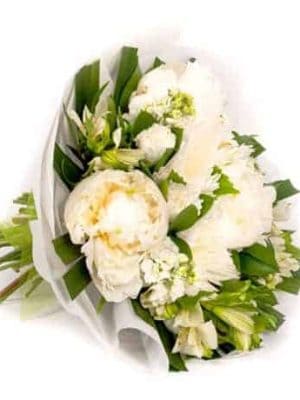 A beautiful longer stemmed pink flower bouquet of seasonal flowers & foliage. Choose from whites, pastels or bright colour combinations.