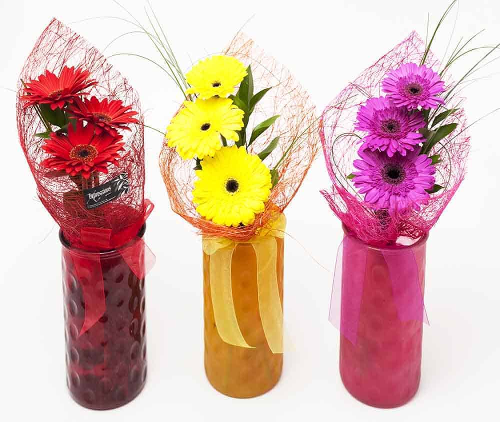 Triple Gerbera Bouquet – Perfect for any occasion, celebrate with beautiful Gerberas to help say thank you, get well soon, or send a bouquet just because. Gerberas come in a rainbow of colors and are cherished for their long wavy stems and big, bold blooms.